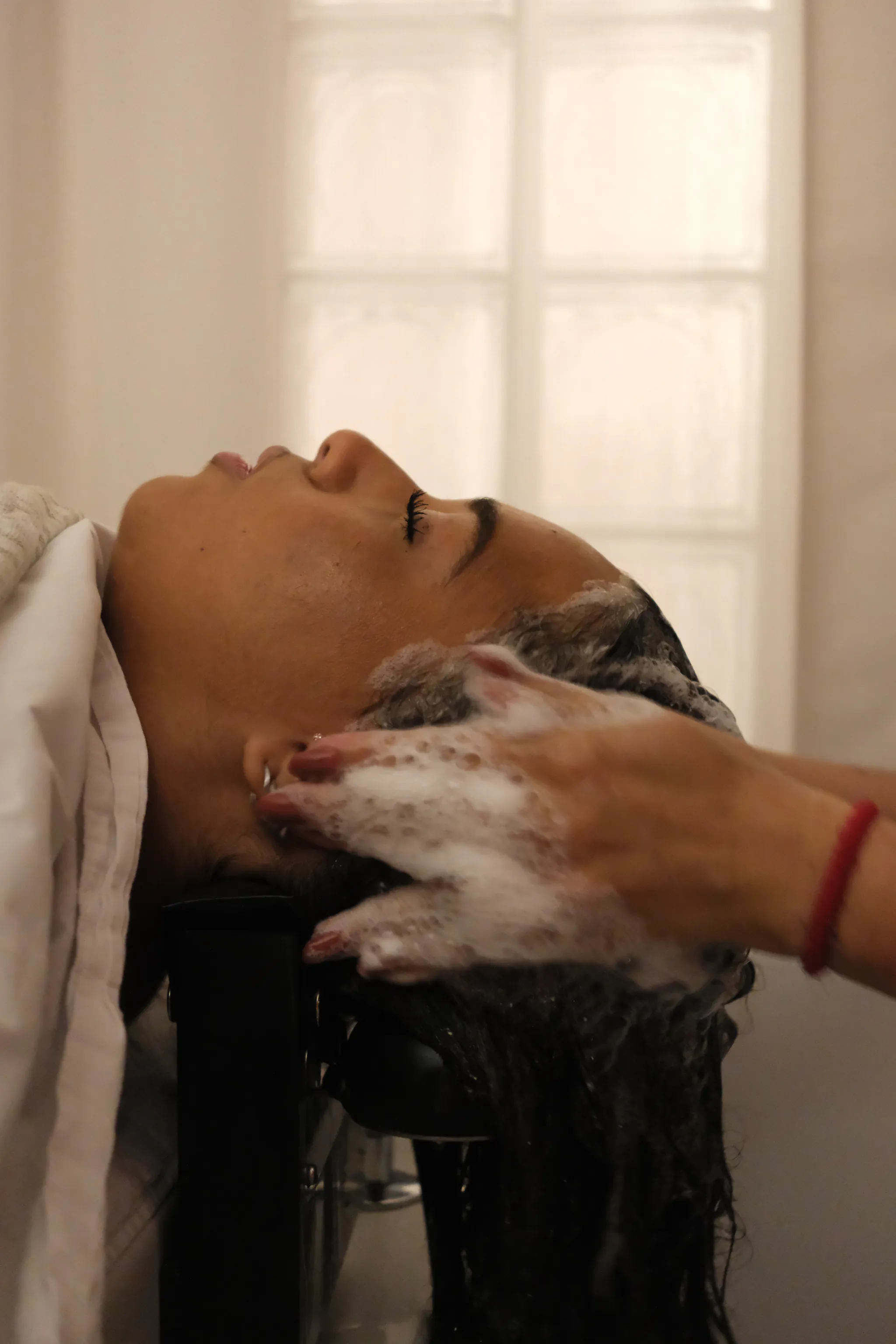 Rituel japonais relaxant : massage crânien, soins du cuir chevelu et détente absolue.